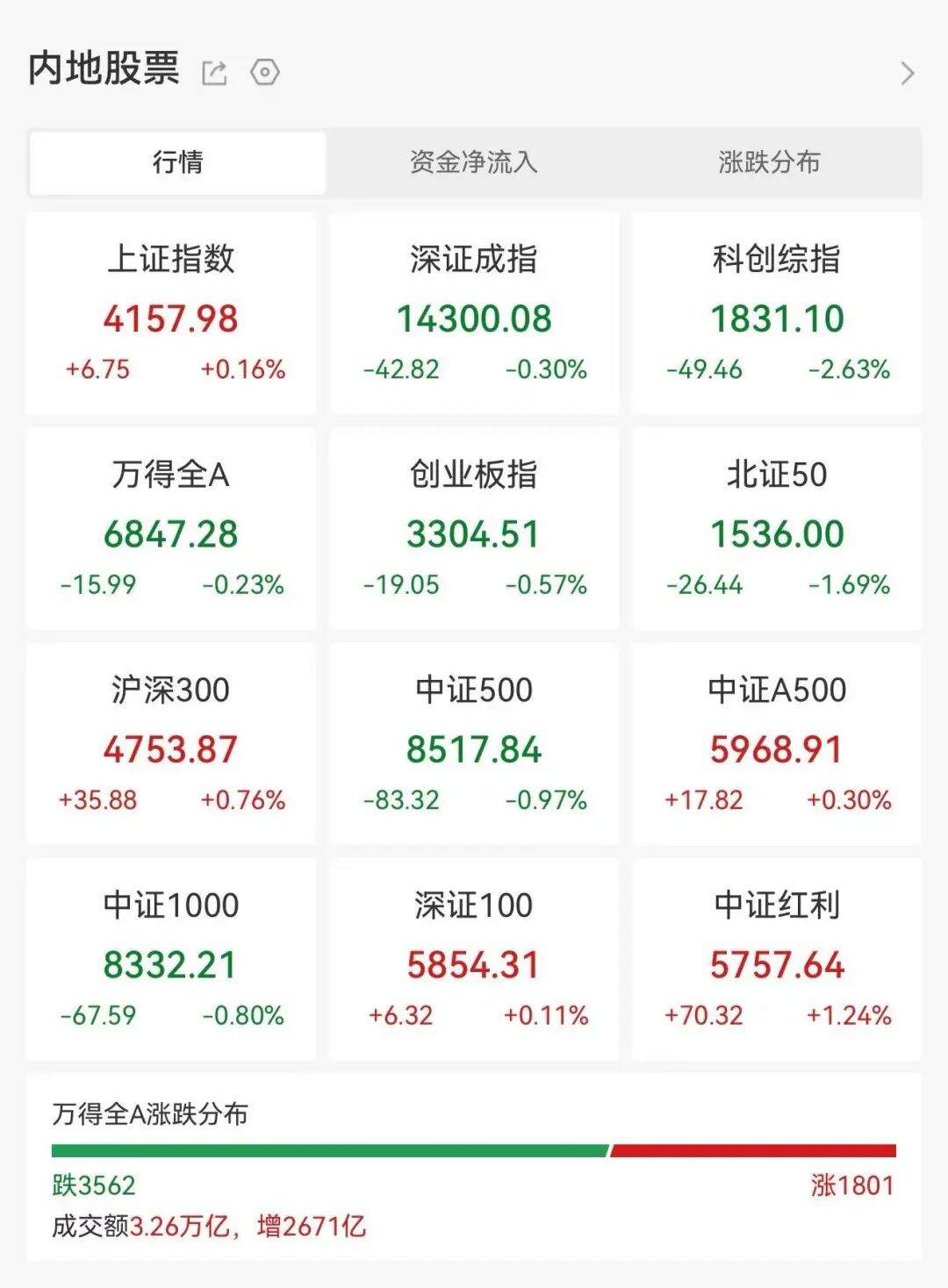 1月29日,A股全天震荡分化,三大指数涨跌互现。截至收盘,沪指上涨0.16%,最新报4157.98点;深证成指跌0.3%,创业板指跌0.57%。今日市场成交32594.18亿元,较昨日放量2671.29亿元。