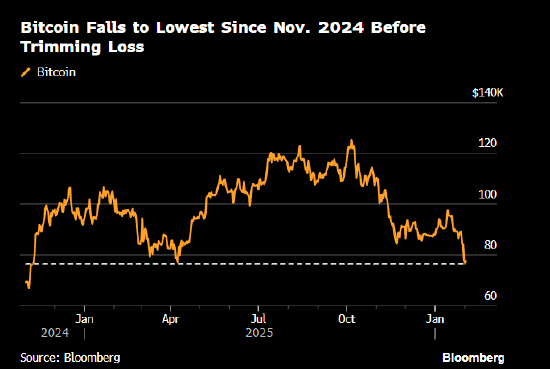 更大加密货币比特币过去五日累计跌幅达14%。