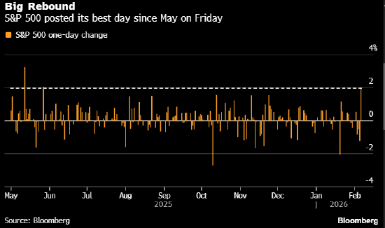 周五的强劲反弹,标普500指数创下5月以来更佳单日表现,抹去了当周大部分跌幅。然而,投资者仍在应对晦暗的经济前景,并对人工智能如何重塑各行业日益担忧,尤其是软件股这一当周动荡的核心领域。