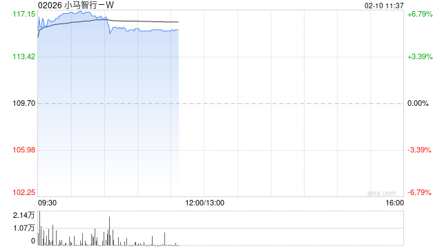 小马智行-W(02026)盘中涨超6%,截至发稿,股价上涨5.38%,报115.60港元,成交额3627.87万港元。