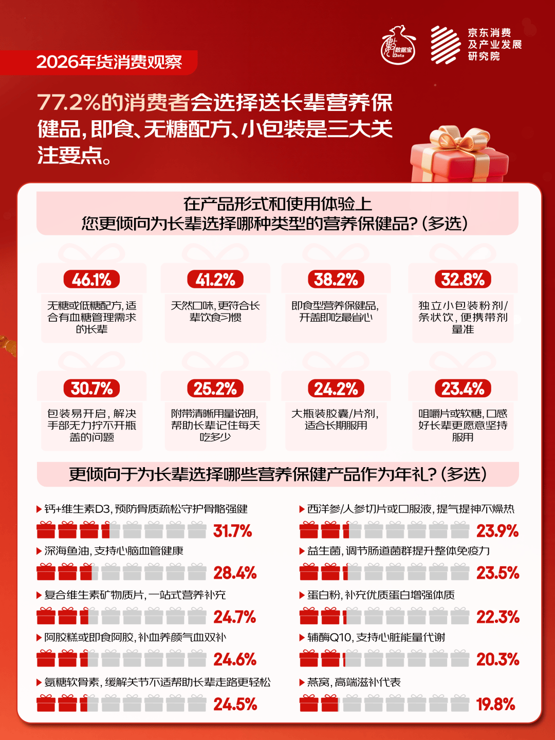 编者按:新春将至,年味渐浓,年货消费既是人间烟火,更是观察消费活力与时代变迁的重要窗口。证券时报?数据宝联合京东消费及产业发展研究院重磅推出《2026年货消费观察》系列,在浓浓年味中呈现消费新变化、新热点,挖掘背后的产业逻辑与投资价值,与读者共赴一场热气腾腾的中国年。本文系送长辈礼品篇。