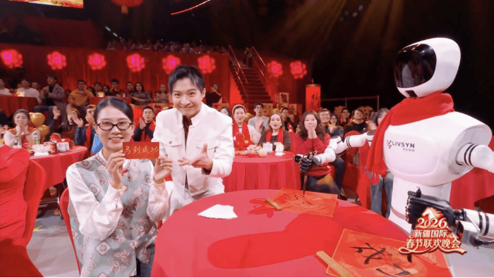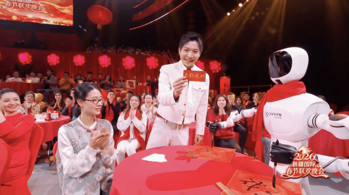 节目 *** 环节,小灵机器人更是实力圈粉,现场左右开弓、挥毫泼墨,一笔一划写下“马到成功”四个苍劲有力的毛笔字。从精密的技术算法,到兼具神韵的书法表达,小灵用科技的“指尖”玩转中华传统书法艺术,将马年的美好期许镌刻在宣纸上,也让全国观众感受到科技与传统文化融合的独特魅力,这一幕也成为本届新疆国际春晚的经典瞬间,引得观众直呼“惊艳”。