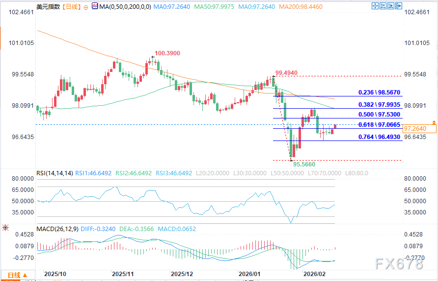 美元稳健得益于三重支撑与博弈:一是油价支撑,伊朗在霍尔木兹海峡的军事演习推升油价,叠加美元短期低估,为美元提供助力,且截至3月底美国对伊朗发动打击的概率接近40%,局势升级或进一步强化油价对美元的支撑;二是经济数据分化,美国1月非农数据亮眼(13万人、失业率4.3%)助推美元反弹,但CPI回落(2.7%至2.4%)加码降息押注,两者形成制衡;三是避险需求,美股“2月寒流”与AI恐慌情绪,增强了美元的避险吸引力。