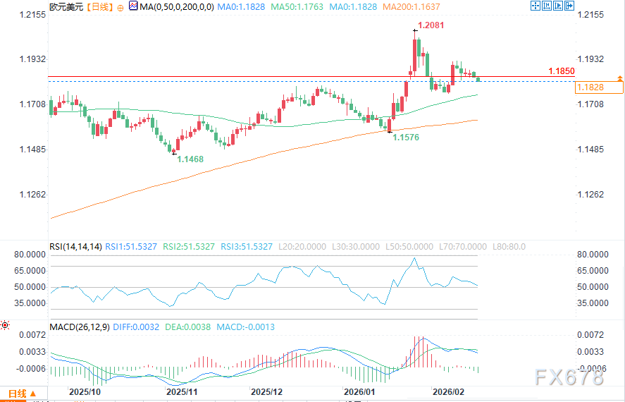 在美元稳健运行的背景下,欧元兑美元当前陷入窄幅交易区间,截至2月17日20时30分许报1.1830,较前一交易日下跌0.0023,波动幅度仅0.1688%,连续多个交易日维持窄幅横盘震荡,市场在关键数据公布前的观望情绪,进一步加剧了其盘整态势。即便欧洲央行宣布准备向其他央行提供流动性以防范货币市场紧张(包括从三季度开始增加回购操作),也未引发该货币对的明显反应,核心原因仍是市场对美联储政策路径的等待与观望。