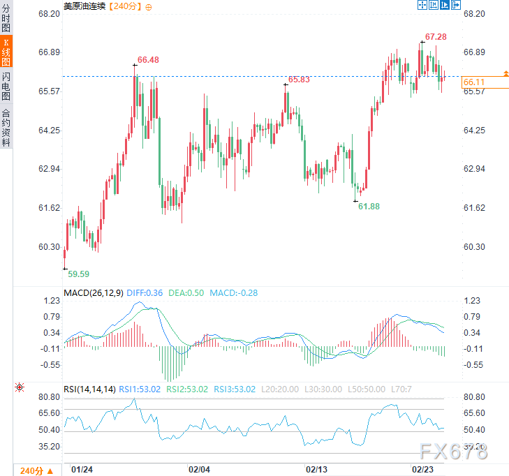中东动荡的局势预计为油价注入风险溢价,周三亚市时段,美原油价格震荡走高,现交投于每桶66.15美元附近,日内涨幅约0.8%。