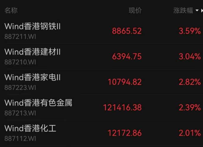 盘面上,钢铁、建材、家电、有色金属板块涨幅较大。