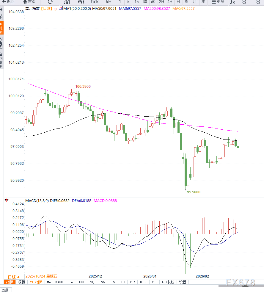 短期内若通胀数据再度走软,美元或进一步下探97下方;若经济数据保持韧性,则跌势可能在96.80―97.30区域企稳。整体判断为震荡偏弱运行。