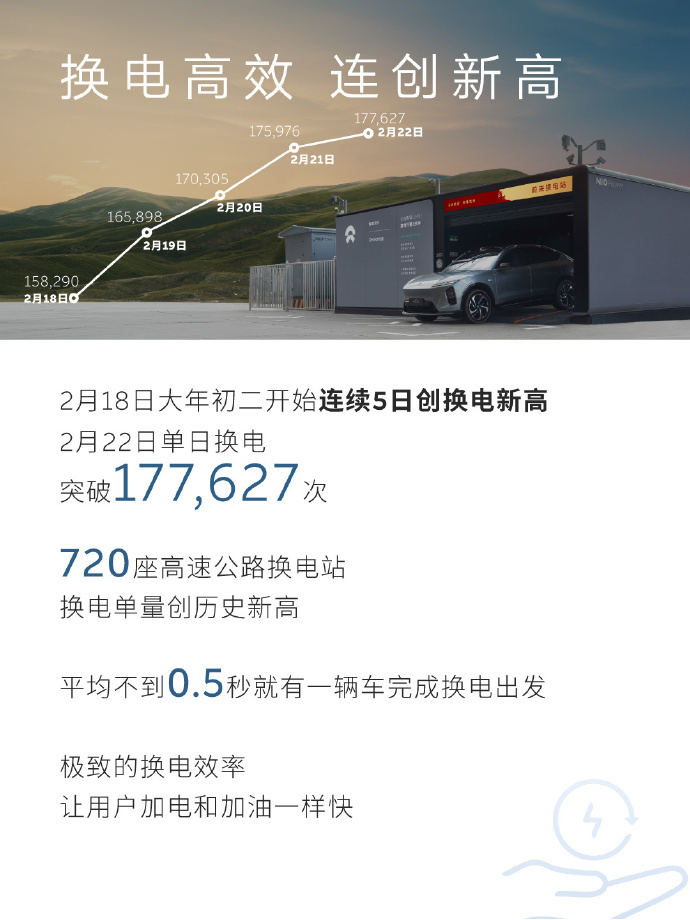 对此,蔚来汽车创始人、董事长、CEO李斌发文回应:“每次长假回来看到加电报告,都会有惊喜。很高兴看到今年春节有这么多用户开着蔚来、乐道、萤火虫,驰骋在大江南北,也让蔚来能源连续5天创下换电单量新高。感谢大家的信任与支持。蔚来将继续夯实补能 *** 建设,新的一年,我们继续加电。“