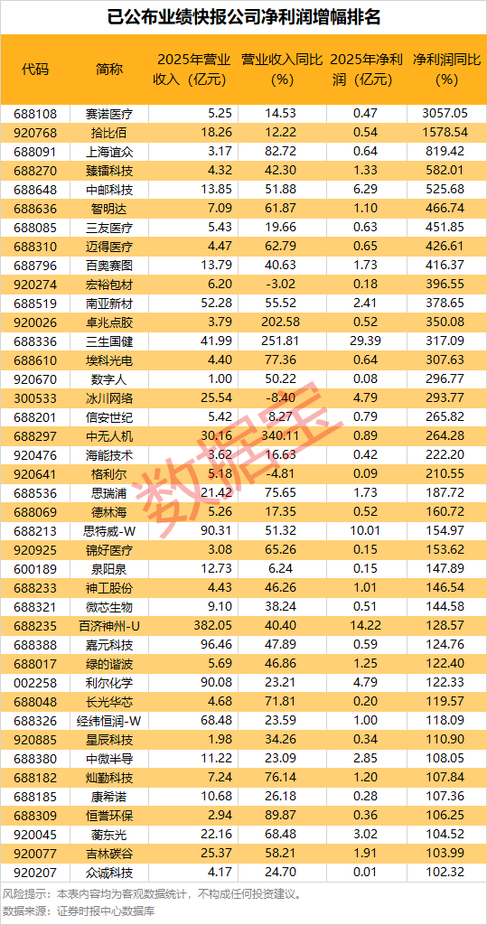 业绩快报抢先看:超40股净利润增幅超100%