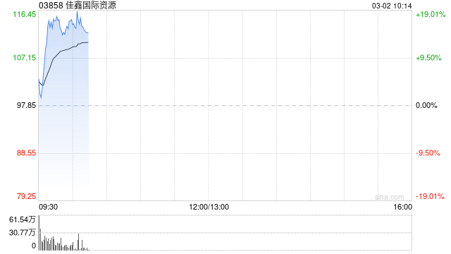 佳鑫国际资源(03858)盘初逆市涨超17%,高见116.40港元,再创历史新高。截至发稿,股价上涨15.28%,报112.80港元,成交额8.83亿港元。