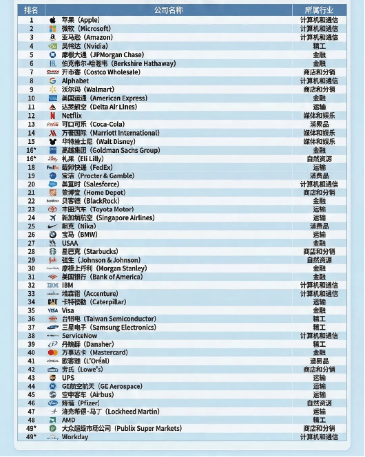近日,《财富》杂志正式发布新一年度“全球最受赞赏公司”榜单(Fortune World’s Most Admired Companies),全球更具影响力与卓越声誉的企业再次齐聚这一权威榜单。这份榜单是基于对约3000名企业高管、董事及分析师的问卷调查得出的年度企业声誉排行。