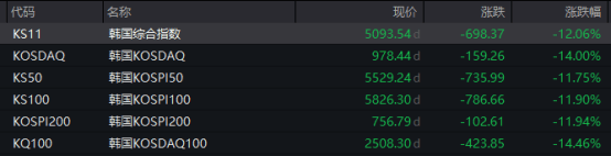 韩国股市成为中东局势升级更大输家。周三,韩国股市交易延续此前跌势,韩国综合指数收盘下跌超12%,KOSDAQ指数下跌14%。三星电子、SK海力士等科技股领跌。截至目前,韩国股市总市值约4000万亿韩元(约合19万亿人民币)。