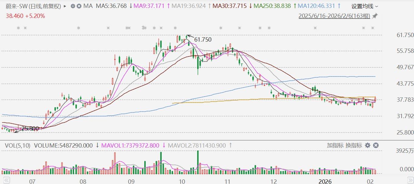 蔚来(9866.HK)逆势上涨,盘中一度涨超6%报39港元。消息面上,公司公布,预计去年第四季度经调整经营利润约7亿至12亿元人民币,此为公司首次录得单季度经调整经营利润;2024年第四季度经调整经营亏损55.44亿元人民币。公司预计实现经调整经营利润主要是公司于2025年第四季度销量持续增长;有利的产品组合推动汽车毛利率优化;公司持续推行全面降本增效措施。