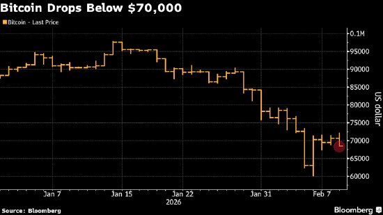这一加密货币鼻祖在亚洲交易时段走势企稳,而到纽约时间早7点20分左右,其价格下跌约2%,报69037美元。相较于上周的大幅波动,此次跌幅尚属温和——比特币曾在周四暴跌至60033美元,创2024年10月以来新低,随后又在周五反弹至7万美元上方。