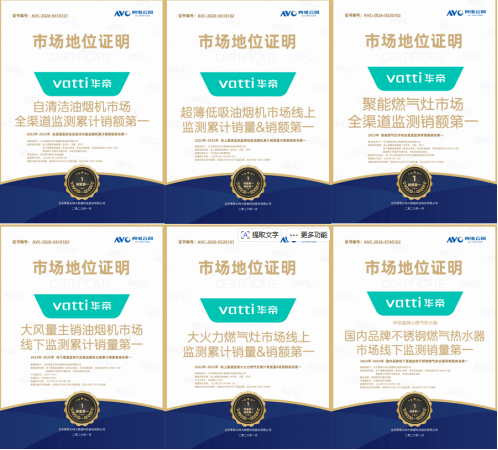 作为中国高端厨电品牌的代表,华帝始终坚持“做全球高端品质厨房空间的引领者”。此次四大品类斩获多项权威认证,既是市场对其技术实力的肯定,也是消费者对其产品品质的信赖。未来,华帝将继续以用户需求为导向,迭代升级产品,以更前沿的科技、更优质的产品、更完善的服务,为更多家庭解锁品质厨房生活新可能。