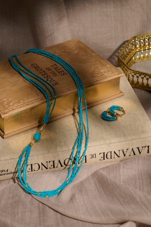 此次春日珠宝臻选中,“那不勒斯-庄园午后四层链”以意大利那不勒斯海岸庄园的午后景致为灵感源泉,将海岸的宁静与光影的流动凝于设计。珠宝臻选素有「高原之泪」之称的蓝色美松,质地澄澈、色泽清亮,尽显天然宝石的原生质感。四层错落链型,层次分明且线条柔和,既能修饰颈部线条,又能完美适配春日轻法式的慵懒浪漫与新中式的雅致内敛,轻松点亮各类春日穿搭,让佩戴者仿佛置身于那不勒斯的春日庄园,邂逅一场与光影的温柔相遇。