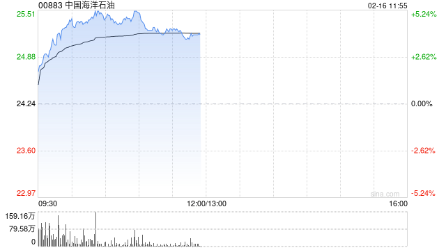 石油股午前普遍上扬,截至发稿,中海油(00883)上涨3.63%,报25.12港元;中海油服(02883)上涨2.97%,报9.71港元;中石油(00857)上涨1.44%,报9.18港元。