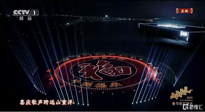 伴随"福来 福来"的动感旋律,问界M9组成的车阵光影流转,勾勒出寓意圆满美满的视觉元素。车阵中心,"福" 字与 "问界山河" 字样点亮夜空,科技感与祝福意象交融,让问界M9的第三次春晚亮相成为亿万观众心中的新春记忆。