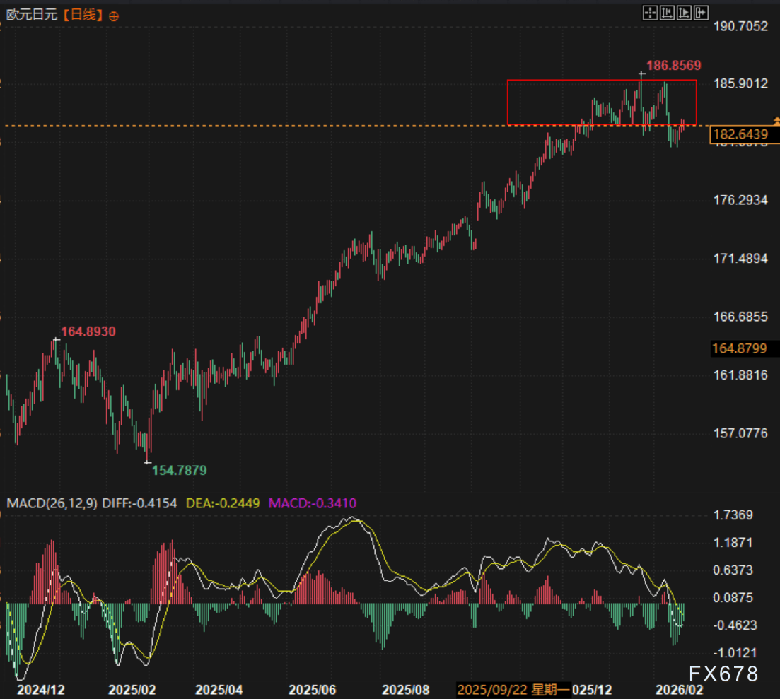 综合来看,通胀降温与货币政策收紧节奏的不确定性,持续压制日元弹性但高市早苗的表态也让市场不能排除窗口指导等 *** 干预的选项,从而给日元升值埋下了伏笔;而欧元区经济复苏带来的相对优势形成互补,叠加欧日央行政策分化的潜在空间,最终推动欧元兑日元短期处在高位较为有利的位置。