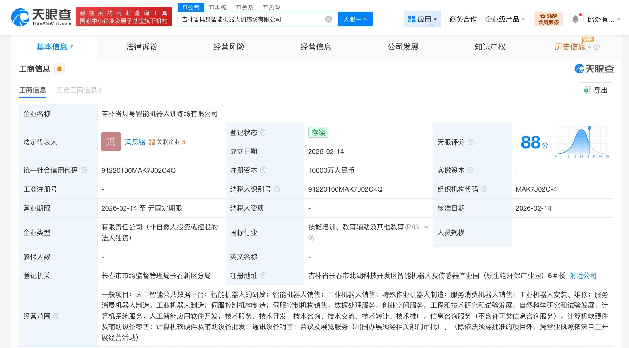 天眼查App显示,近日,吉林省具身智能机器人训练场有限公司成立,法定代表人为冯思铭,注册资本1亿人民币,经营范围含人工智能公共数据平台、智能机器人的研发、智能机器人销售、工业机器人销售、特殊作业机器人制造、工程和技术研究和试验发展、自然科学研究和试验发展、计算机系统服务、人工智能应用软件开发等。股权全景穿透图显示,该公司由吉林省吉翼具身智能机器人有限公司全资持股,后者由长春捷翼汽车科技股份有限公司、吉林省工业技术研究院集团有限公司、长春市产业投资集团有限公司等共同持股。