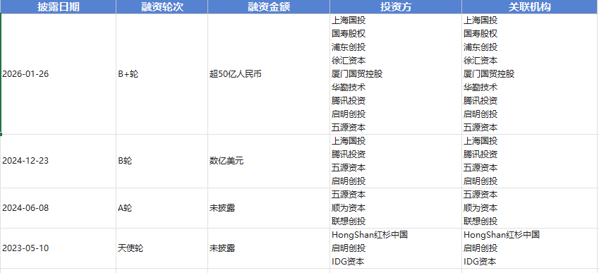 2024年12月,阶跃星辰完成数亿美元B轮融资,上海国投先导基金、浦东创投、徐汇资本、无锡梁溪基金、厦门国贸等多个国资参投。2024年6月公司A股融资投资方包括五源资本、顺为资本和联想创投。2023年5月的天使轮融资则是红衫中国、启明创投和IDG资本。其中启明创投连续几轮投资都参与,如果阶跃星辰最终IPO完成,可能会赚的盆满钵满。