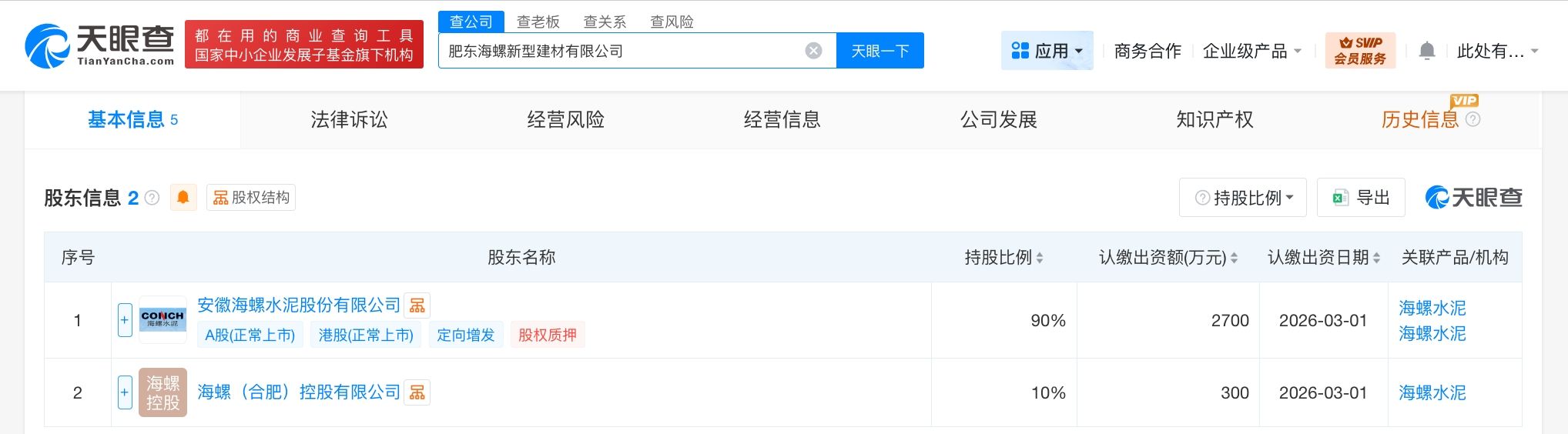 海螺水泥在肥东成立新型建材公司 注册资本3000万