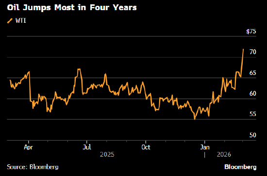 由于霍尔木兹海峡油轮运输几乎停滞,沙特一座大型炼油厂停运,WTI原油大涨7.5%,至每桶72美元。柴油期货一度上涨逾五分之一。欧洲液化天然气价格则因卡塔尔停产而暴涨。