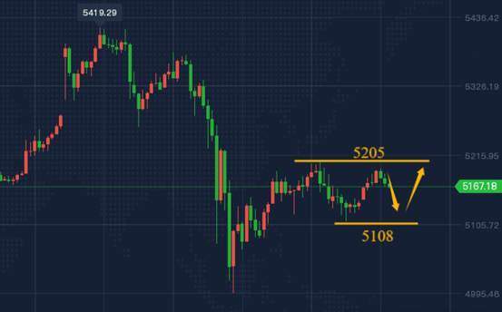 从盘面运行来看,昨日黄金呈现连续反弹、回落即探底回升的特征,昨日低点在5085附近,隔夜尾盘回踩至5108止步回升,今日亚盘延续5108止跌回升走势,短期小周期的反弹动能延续,但是并没有上破5205昨日反弹高点位置,今日黄金盯住5109及5205这两个位置,白盘可以依托5205防守在5200区域去参与短空,回落企稳5108上方去反手介入多,后面破高之后再去进一步看涨。