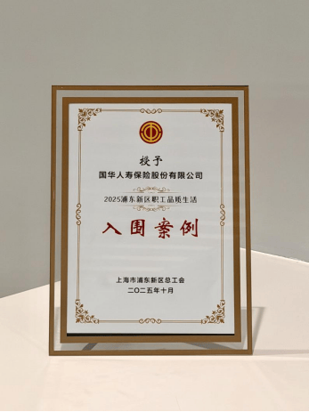 近日,国华人寿工会推行的职工关怀体系荣获“浦东新区职工品质生活示范案例”称号。该荣誉由浦东新区总工会颁发,是对公司“三园文化”的深入实践、系统构建职工成长与关怀体系的高度认可,也彰显了公司在构建和谐劳动关系、凝聚团队合力方面的显著成效。