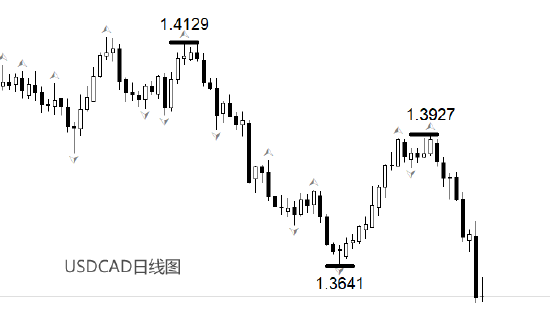 行情方面,日线级别,USDCAD的最新中期低点是1.3641,中期高点时1.3927。最新的下跌波段正在寻找下一个中期低点,形成底分型结构后方可初步确认中期低点的形成。目前市价已经跌破1.3641,且最近几日阴K线幅度较大,空头力量强盛,短期宜抱有顺势思维,不建议盲目抄底。