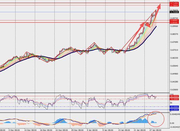第二阻力位:0.7110 第二支撑位:0.6940