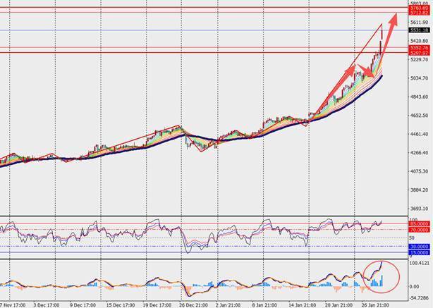 第二阻力位:5577.00 第二支撑位:5500.00
