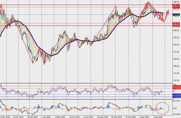 之一阻力位:460.00 之一支撑位:417.00