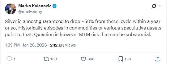 科拉诺维奇于 2024 年离开摩根大通,他最近分享了自己对火热的白银市场的看法,称他认为白银价格大幅下跌几乎是必然的。
