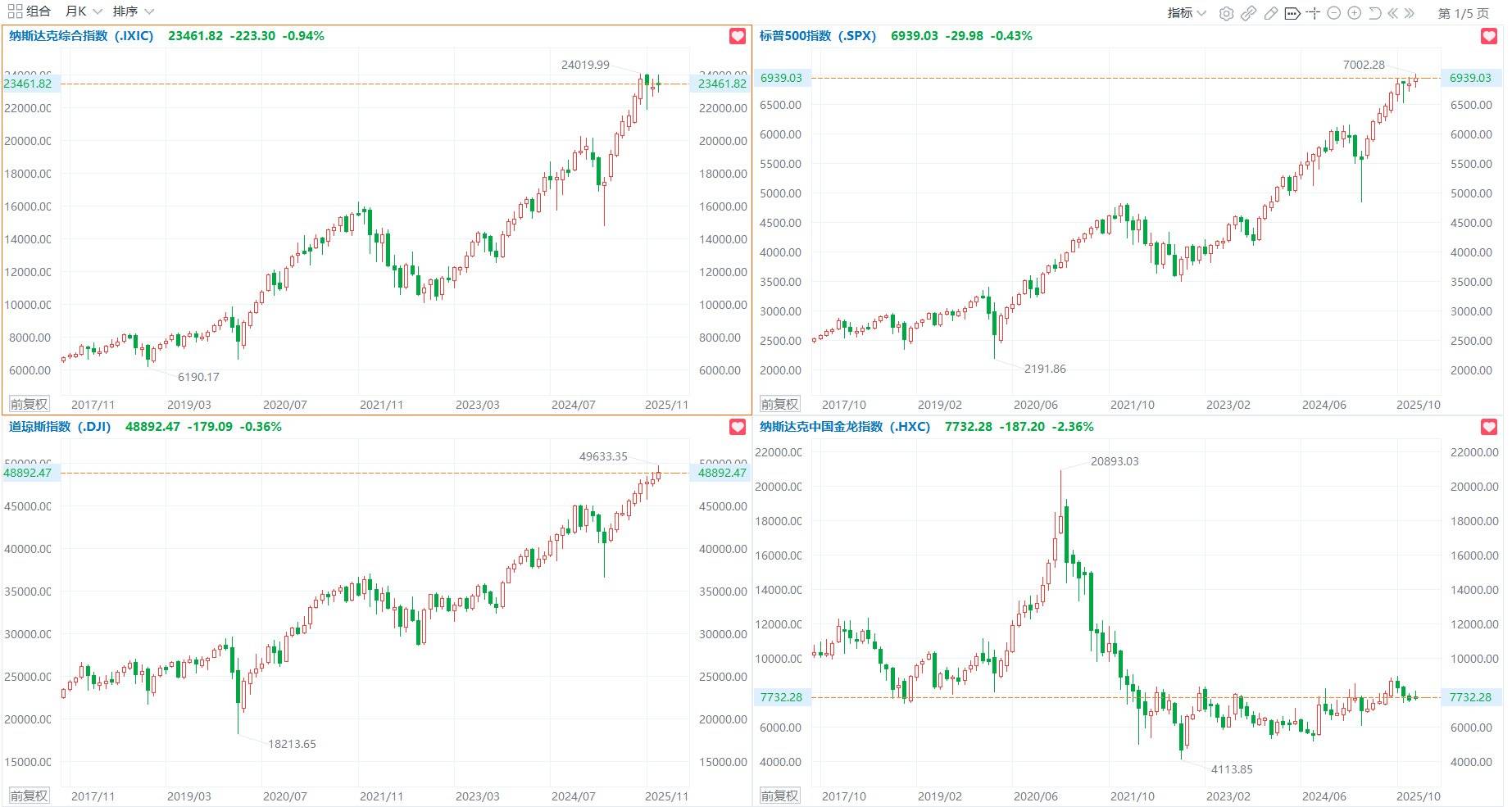 热门股中,1月份,Salesforce跌19.86%,Adobe跌16.21%,甲骨文跌15.34%,高通跌11.38%,微软跌11.03%,奈飞跌10.95%,苹果跌4.55%,伯克希尔B跌4.4%,特斯拉跌4.29%,博通跌4.28%;AMD涨10.54%,台积电累涨8.78%,Meta涨8.55%,谷歌A涨7.99%,亚马逊涨3.67%,英伟达涨2.48%。
